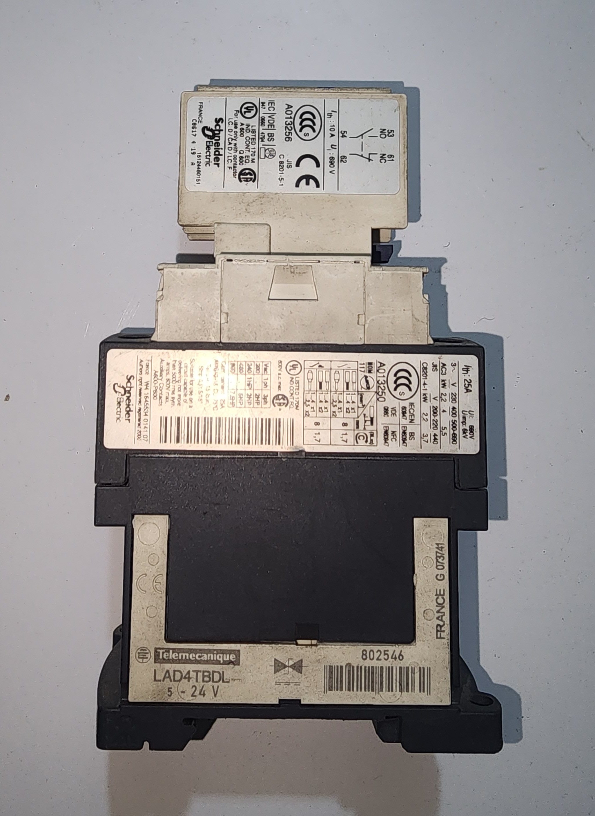کد E1s کنتاکتور تله مکانیک اصلی LAD4TBDL به همراه کمکی LADN11. استوک _۲۴ ولت